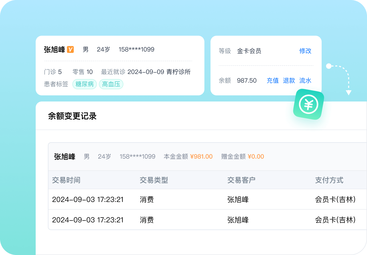 详细记录会员的每一笔消费流水,诊所可制定针对性的服务和优惠策略。