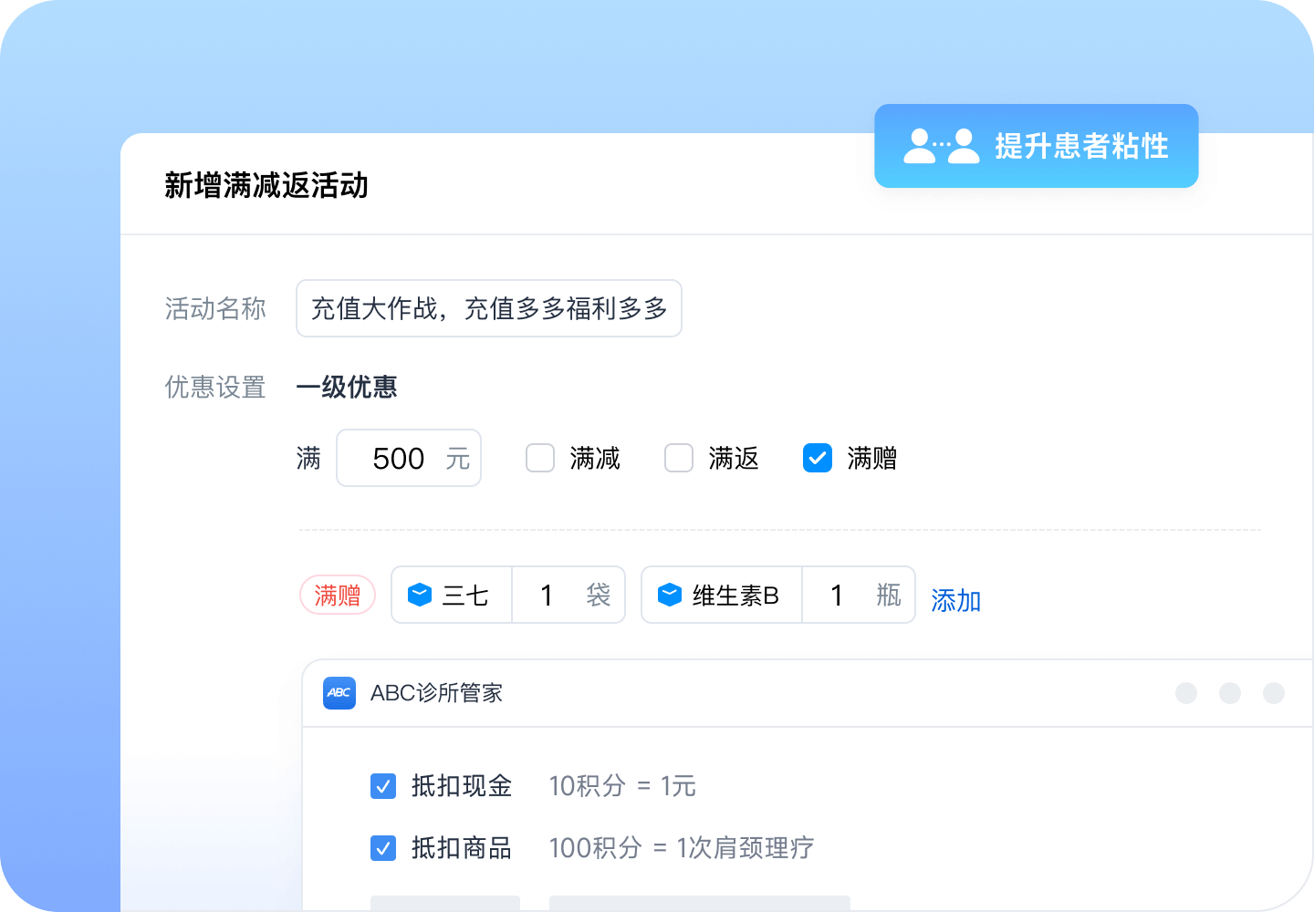 会员储值可享受赠送权益,吸引会员进行储值,增强与诊所的长期联系。