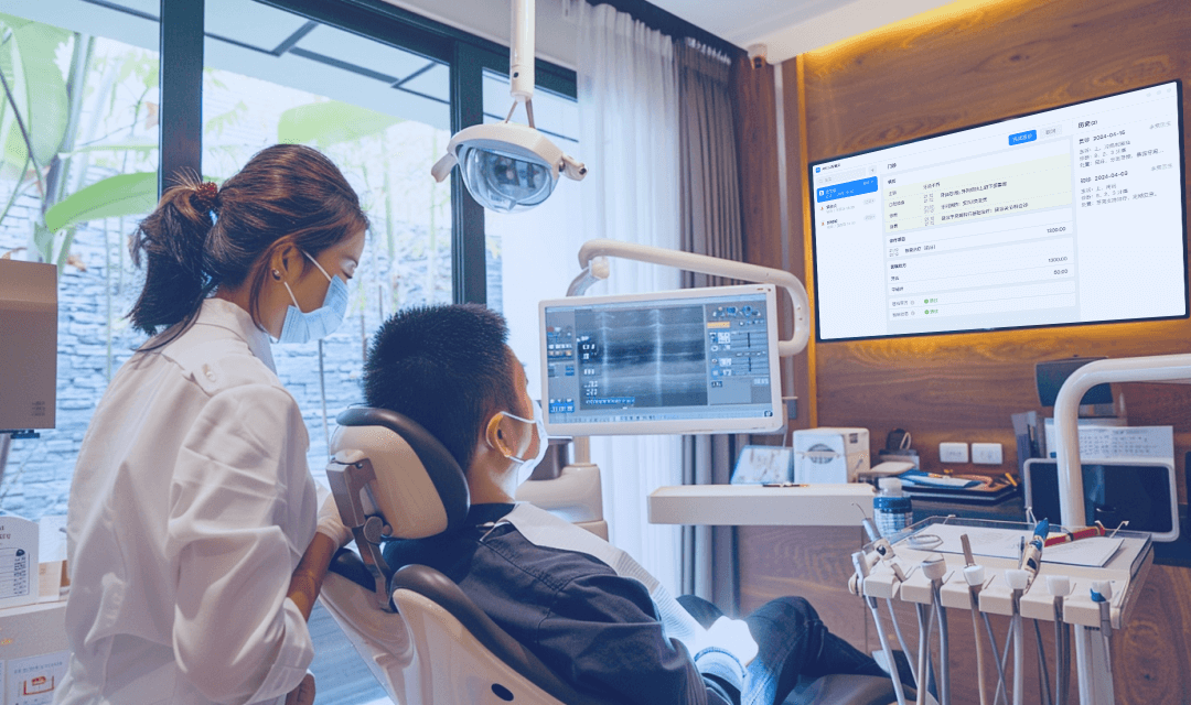 接待、检查、商机转化、确认方案与费用、术前沟通、术后随访,给患者提供一站式口腔服务。